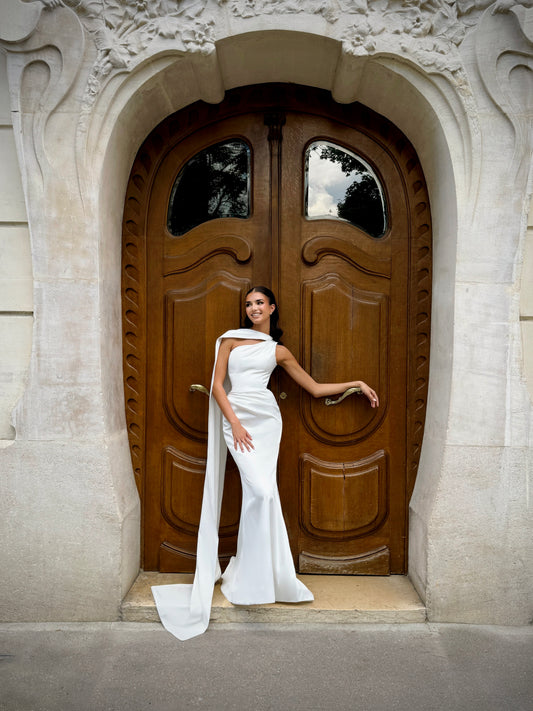 Votre robe réalisée selon vos mensurations exactes avec modifications personnalisées. Réservation 6 mois à l'avance. Acompte de 50%.