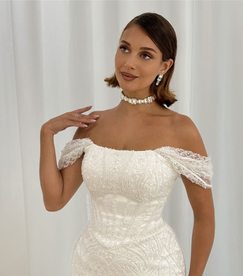 Nos robes de mariée sont conçues pour épouser parfaitement la silhouette, donnant une sensation de sur-mesure, un critère essentiel pour sublimer la mariée le jour J.